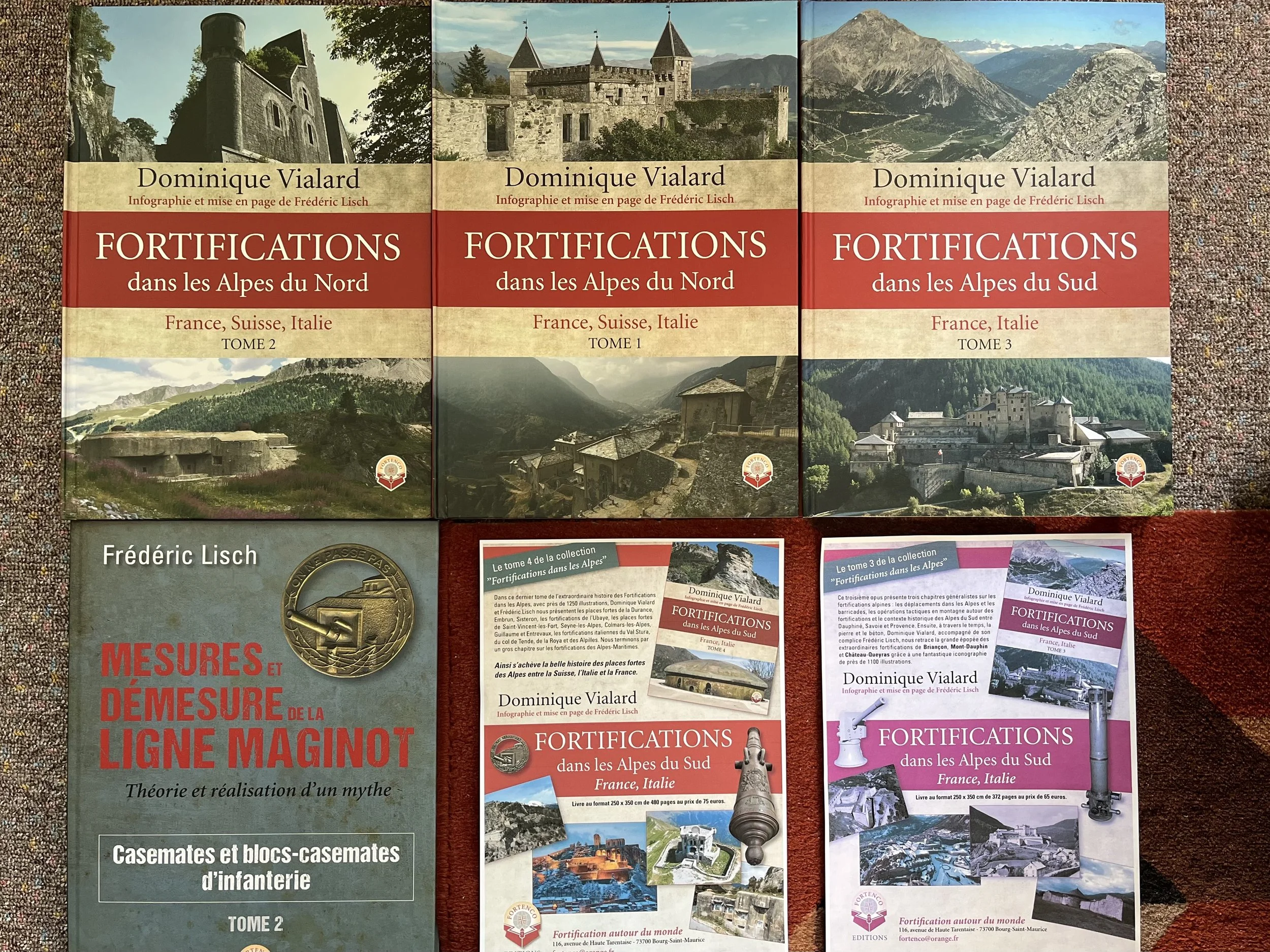 La première est consacrée à l’histoire des Fortifications Alpines entre France, Italie et Suisse. Les 2 premiers tomes parus en 2017 traitent principalement des Alpes du Nord et les tome 3 et 4 parus en 2025 traitent des Alpes du Sud.